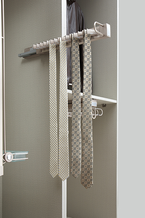 Special racks help store belts, scarves, and ties efficiently without occupying extra space.
